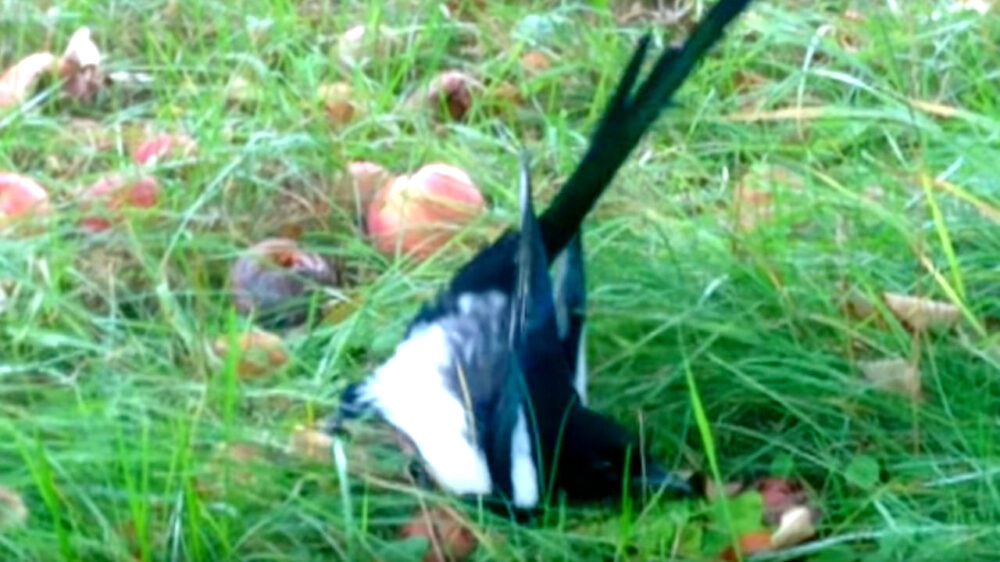 Wel eens een Noorse ekster gezien die strontlazarus over het gras schuift?