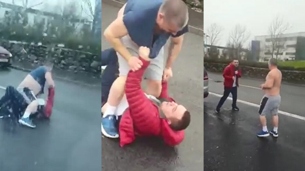 Vader gaat op de vuist met automobilist terwijl zijn Tokkie-gezin hem aanmoedigt Knokken