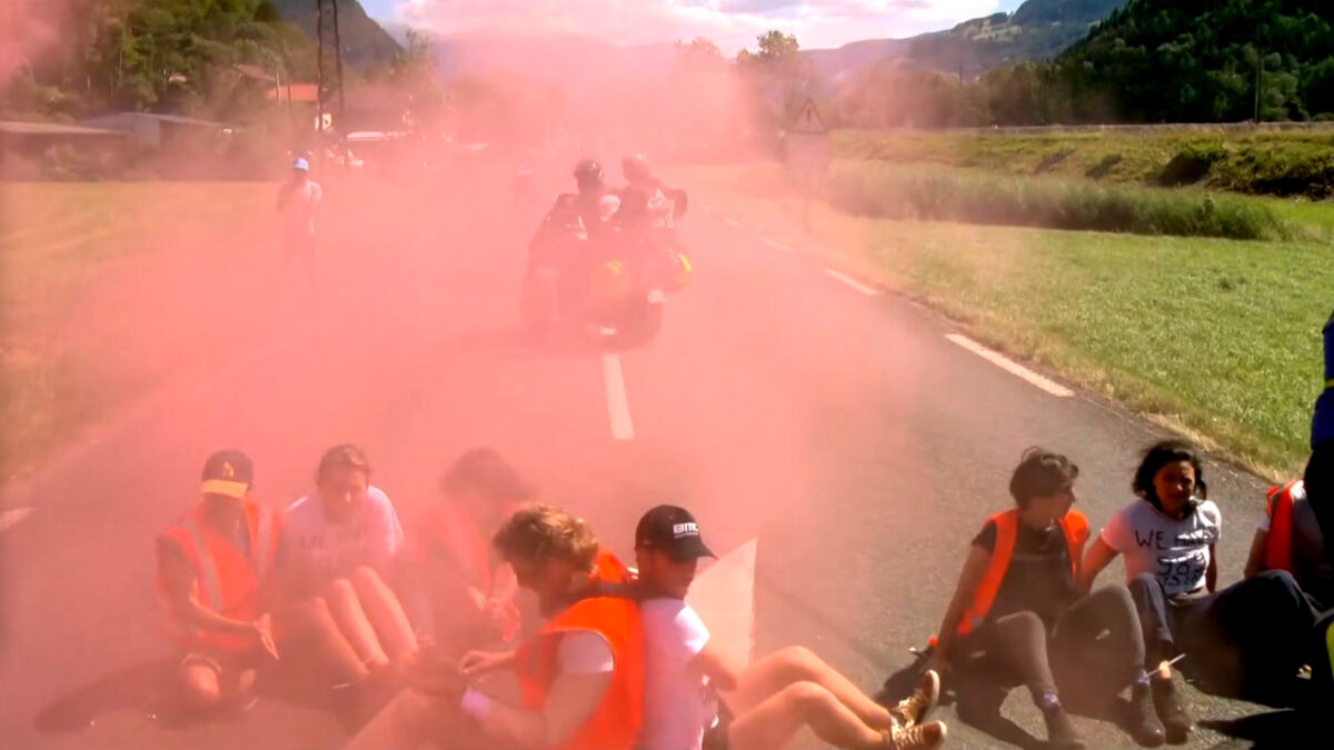 Klimaatactivisten ketenen zich vast op de weg en leggen Tour de France stil Sport