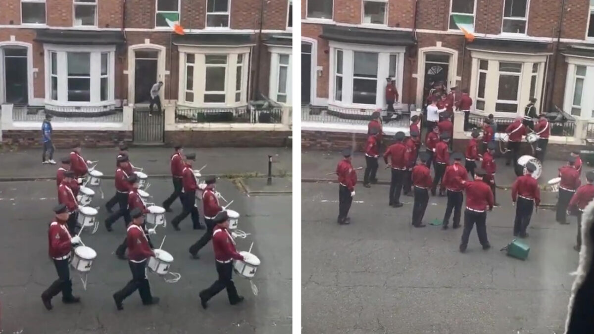 Mini-rel op Ierse straat nadat idioot een kliko naar de fanfare gooit