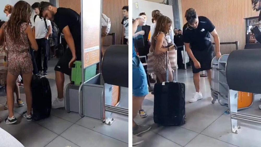 De regels voor bagage in het vliegtuig, en zeker bij low-cost airlines, zijn uitermate strikt. Past je koffer niet in het voorbeeldvak op het vliegveld? Dan mag 'ie niet mee als handbagage. Deze knakker is er in elk geval op gebrand om zijn spullen wél mee te kunnen nemen, want wat er ook gebeurt: die koffer gaat passen!