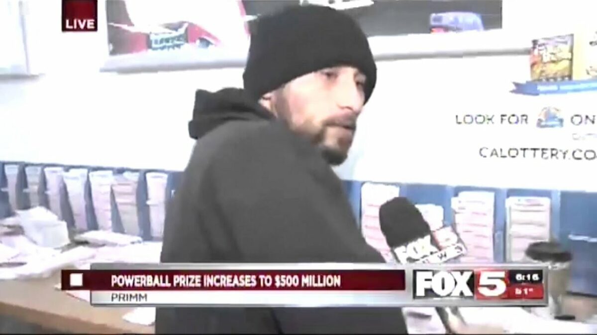 In de oude doos van deze week wordt een gelukszoeker live op Fox 5 Las Vegas geïnterviewd. Hem wordt gevraagd wat zijn lotnummers zijn en of hij in de gaten heeft wat de kans is dat hij de jackpot werkelijk wint. Allemaal weinig interessant, maar het wordt leuker als de verslaggeefster vraagt wat hij zou doen met zijn loterijwinsten . What happens in Vegas stays toch niet altijd in Vegas.