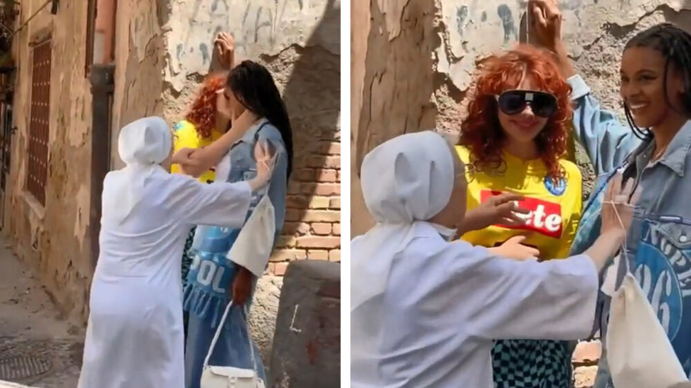 Twee charmante modellen zijn hard aan het werk tijdens een fotoshoot in Napels als plotseling een oude non hen uit elkaar haalt. Waarschijnlijk probeert ze de straten te beschermen van deze zondaars met hun duivelspraktijken. Tja, het Christendom trekt ook nu nog steeds verschillende conclusies als het over homoseksualiteit gaat en je hebt een godswonder nodig om een oude Napolitaanse non op andere gedachten te brengen.
