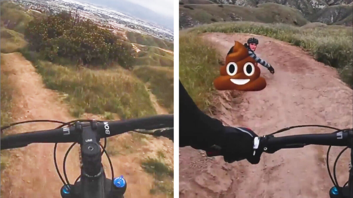 Tijdens het mountainbiken wil je van alles tegenkomen. Mooie vergezichten, wilde dieren en collega's. Dat laatste alleen liever niet op deze manier.