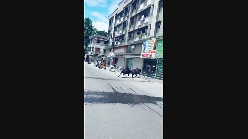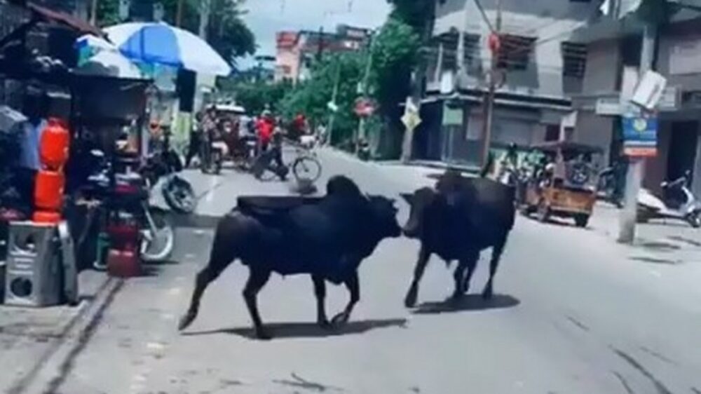 Twee vechtende stieren besluiten plotsklaps te gaan winkelen Dieren