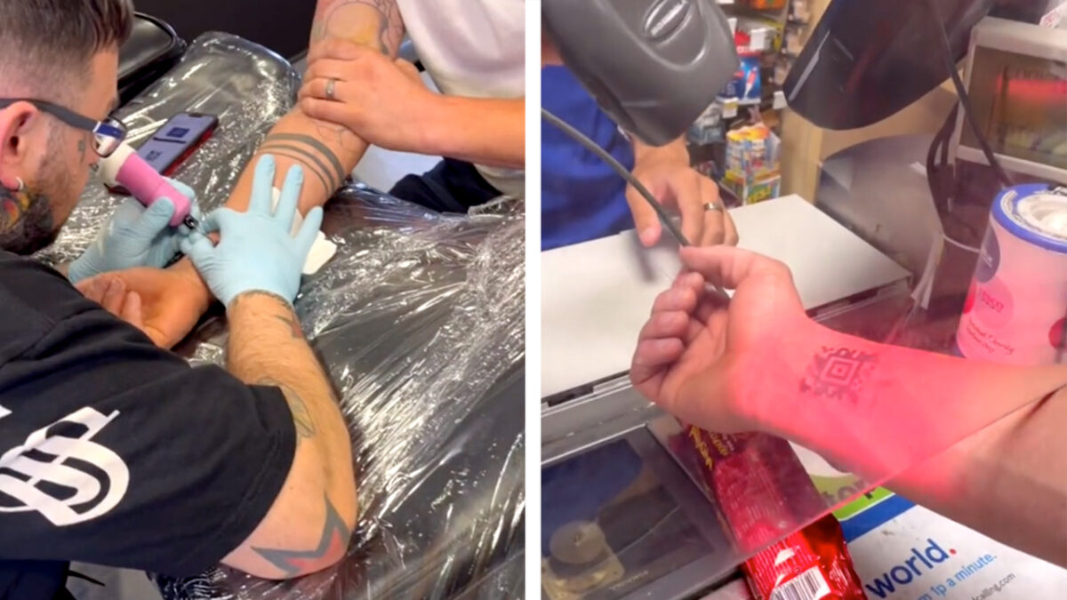 Waarom zou je elke keer die ellendige pasjes of apps van je favoriete supermarkt meesleuren als je ook gewoon de QR-code van je clubcard op je onderarm kunt laten tatoeëren?