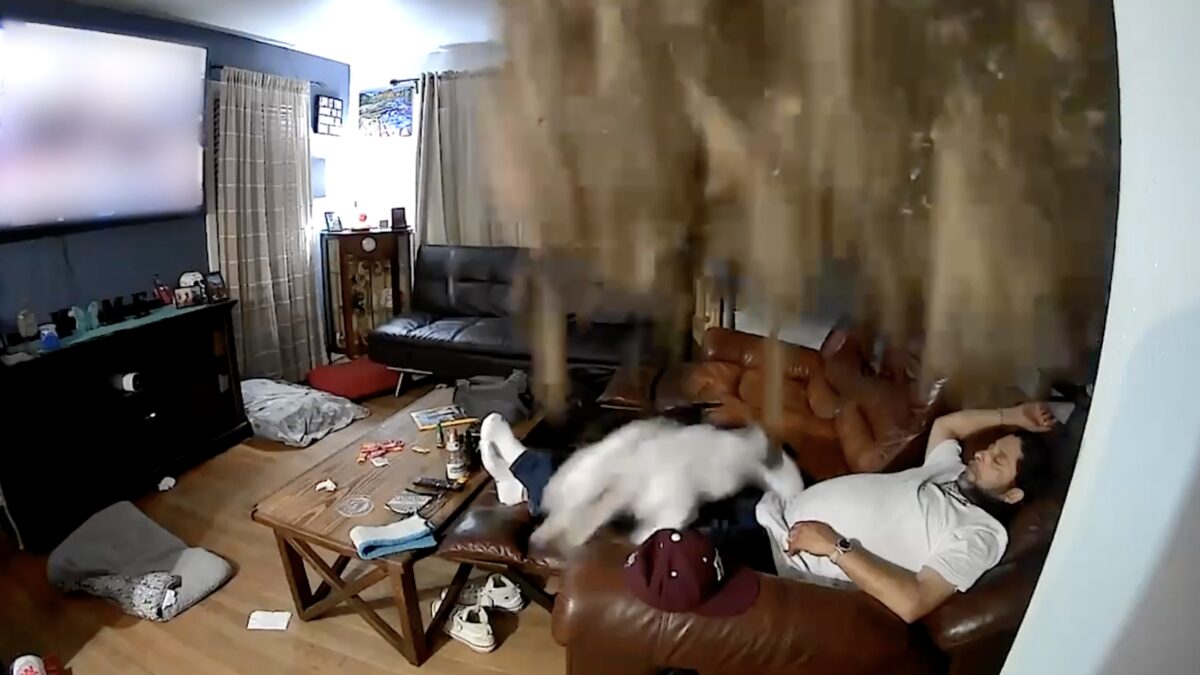 Geen idee of het de bovenburen waren die een stampfeestje hielden of dat het plafond er zelf gewoon klaar mee was, maar één ding is zeker; dit zag 'ie niet echt aankomenn.