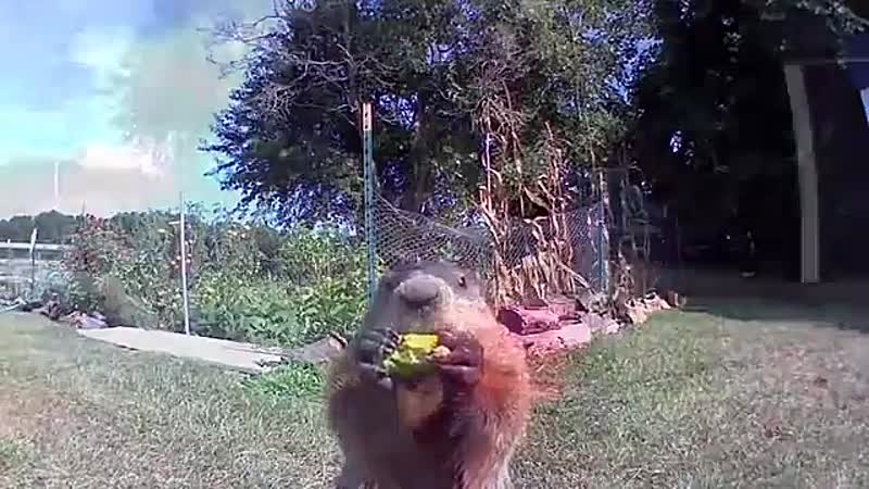 Hier jongûh, ik jat niet alleen je met liefde gekweekte fruit maar laat je ook nog even duidelijk zien hoe ik het oppeuzel door met mijn marmottenhoofd voor je camera te gaan zitten. Oftewel: FAK. JOU.