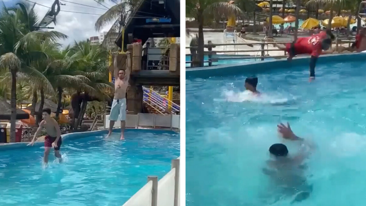 Naar een waterpark gaan en besluiten dat het wel een goed idee is om over een bak water te tokkelen. Wat zou er in godsnaam fout kunnen gaan?