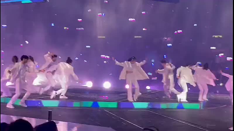 Megabeeldscherm valt op dansers tijdens concert van de band Mirror in Hongkong