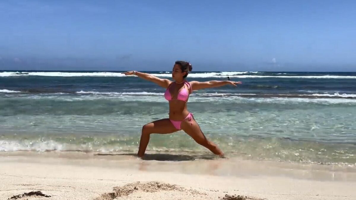 Vandaag hebben we geen yogamatje nodig, want de Colombiaanse Yogi Cath is niet vies van een beetje zand op d'r billen. Dus veeg de slaap uit je ogen en haak aan bij deze schoonheid.