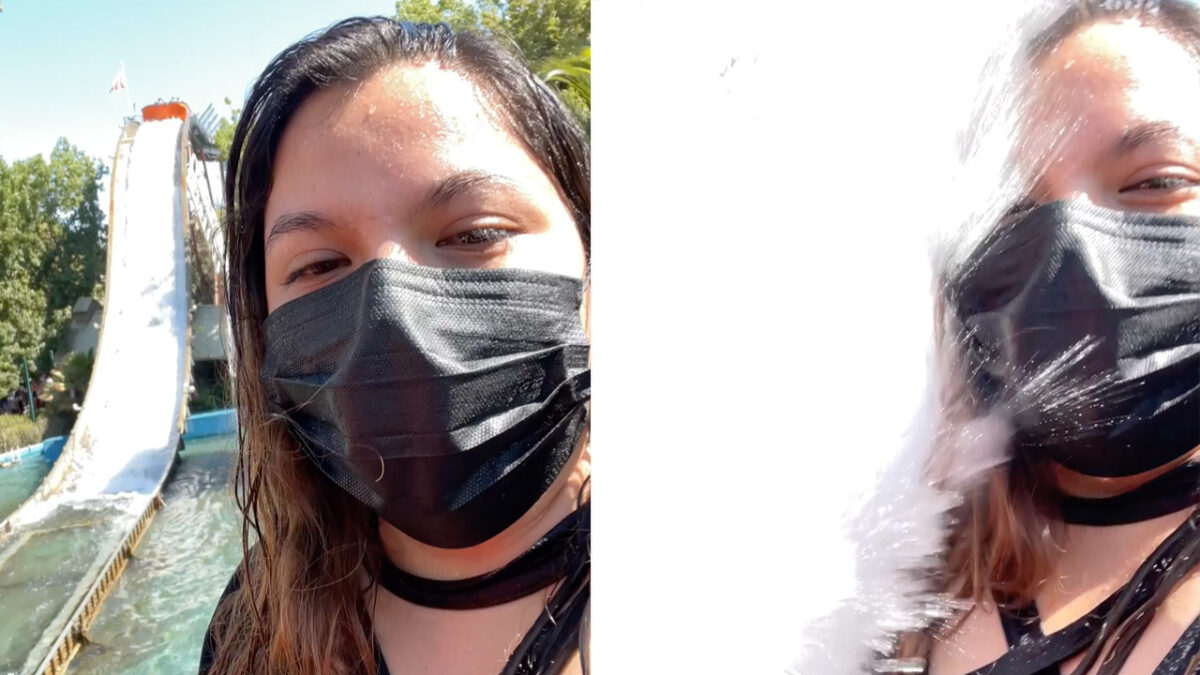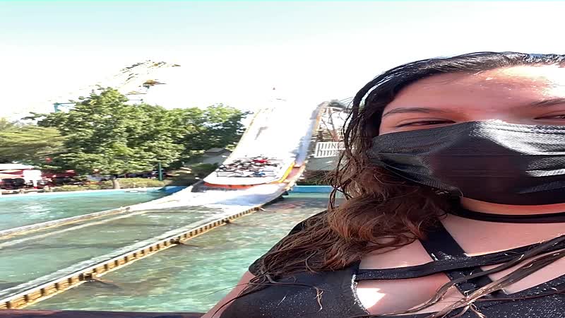 Dankzij deze waterbaan in pretpark 'Fantasilandia' is zij nat tot op d'r onderbroek