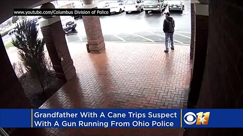 Baasopa met wandelstok tackelt zonder te kijken vluchtend boefje