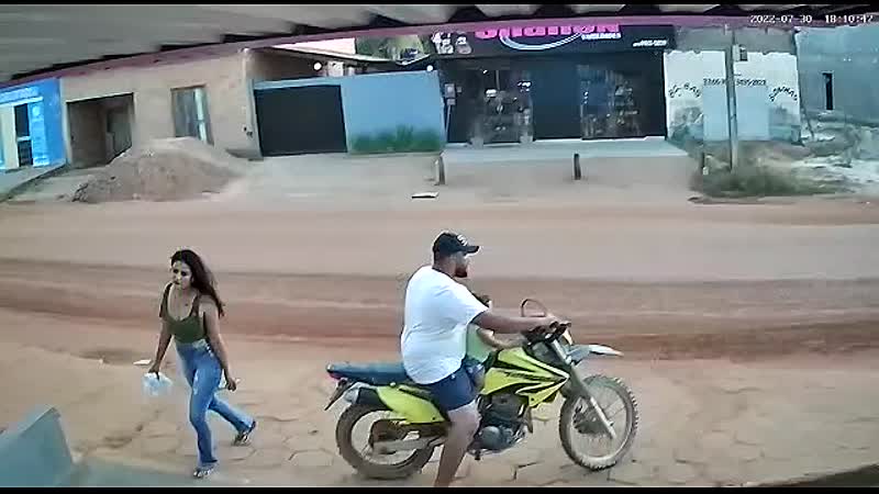 Dus je zet eerst je kleine koter op je motor, parkeert deze daarna praktisch midden op de weg en bent daarna verwonderd dat je bijna wordt aangereden? Gelukkig waren zijn reflexen snel genoeg...