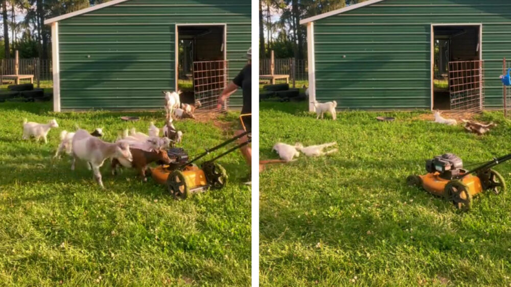 Deze flauwvallende geiten hebben het niet zo op de grasmaaier