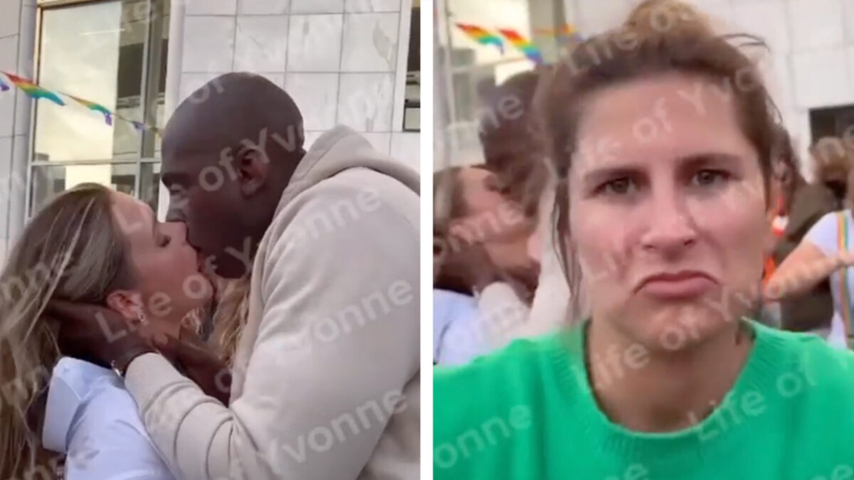 Steven Brunswijk tongworstelt er hevig op los met (andere) vrouw tijdens Pride in Amsterdam
