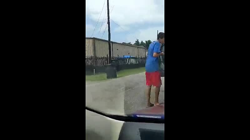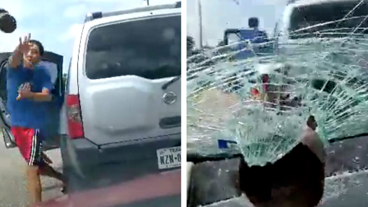 Na een aanrijding in Houston denkt de vrouw uit het filmpje dat ze verzekeringsinformatie zouden uitwisselen, maar als de andere automobilist er vandoor gaat, achtervolgt ze hem om zijn kenteken vast te leggen. Als hij vervolgens stopt en uitstapt mikt hij uit het niets een halter dwars door haar voorruit. De politie doet nog onderzoek naar de zaak, maar aangezien zowel het kenteken als zijn gezicht duidelijk zichtbaar zijn zal dit geen megaklus zijn gokken we zo.