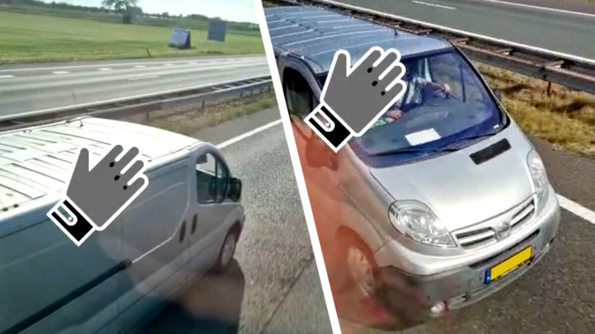 Vrouwelijke bijrijder van bestelbus druk bezig met schoonmaakbeurt van de pook