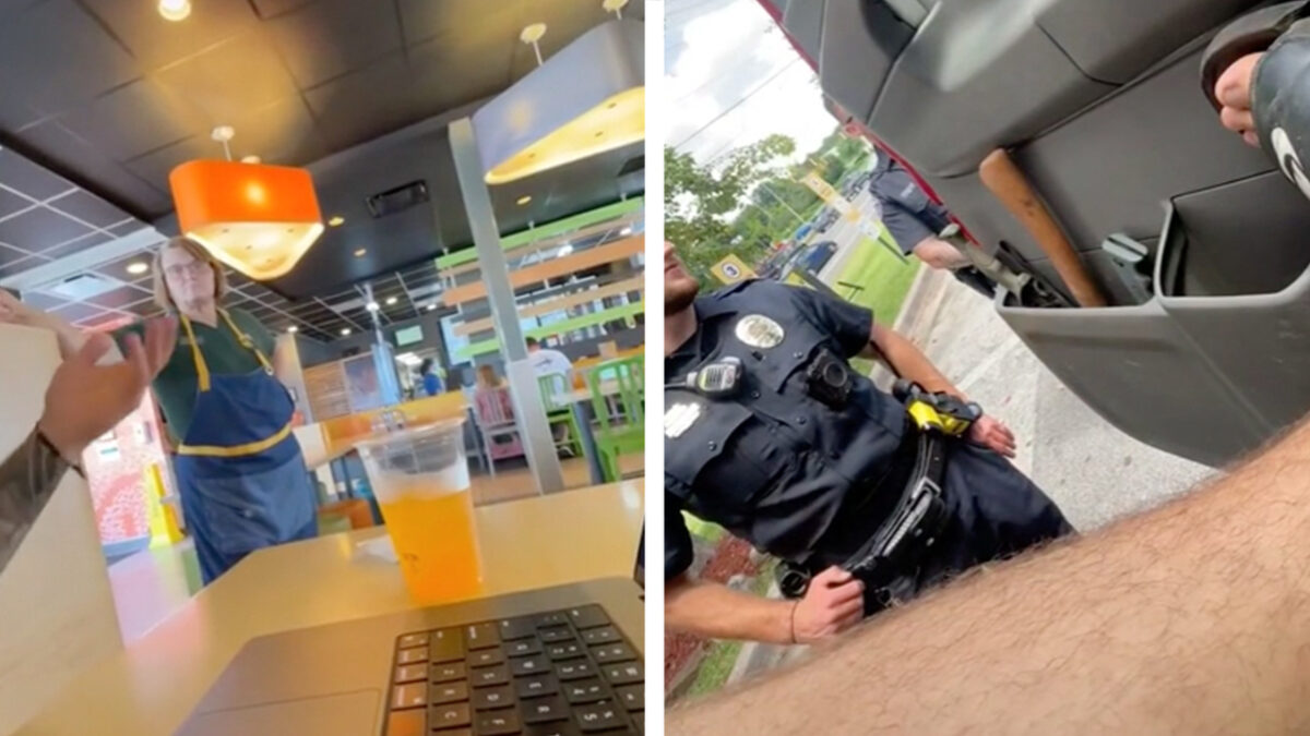 Anyways... TikTokker Brandon Gross zat dus onlangs ook met zijn laptop in een McDonald's. Werd na 20 minuten gewezen op het feit dat hij niets had besteld en hij geen tafel onnodig bezet mocht houden. Dus kocht hij een drankje, om vervolgens lekker verder te laptoppen. Het personeel vond daar wel wat van en verzocht hem dus te vertrekken. Ze gaven hem zelfs nog wat extra tijd, maar Brandon had zijn camera al draaien natuurlijk. Hij had tenslotte toch een drankje gekocht? En wie de fak denken ze wel niet dat ze zijn? Het eindresultaat: de politie werd gebeld en hij moest vertrekken.