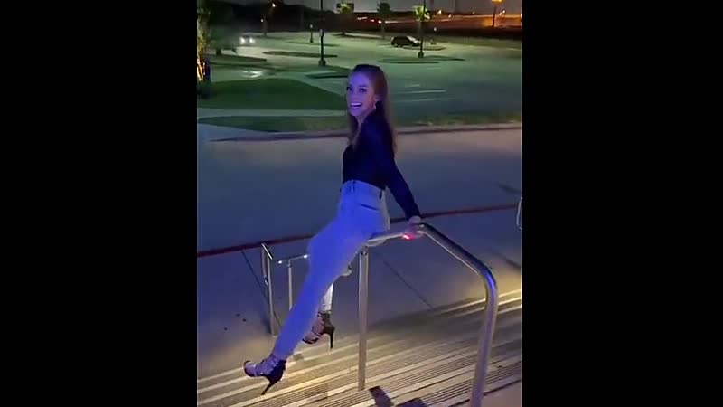 Abigail is een gekke meid die moeiteloos van een leuning glijdt Fails