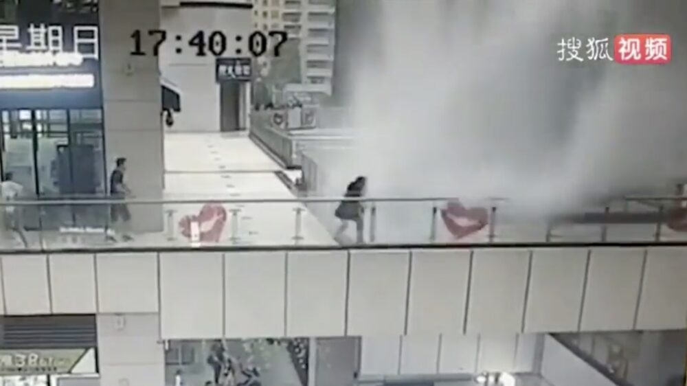 Enorme bak water komt ineens uit de lucht vallen in een winkelcentrum Bizar