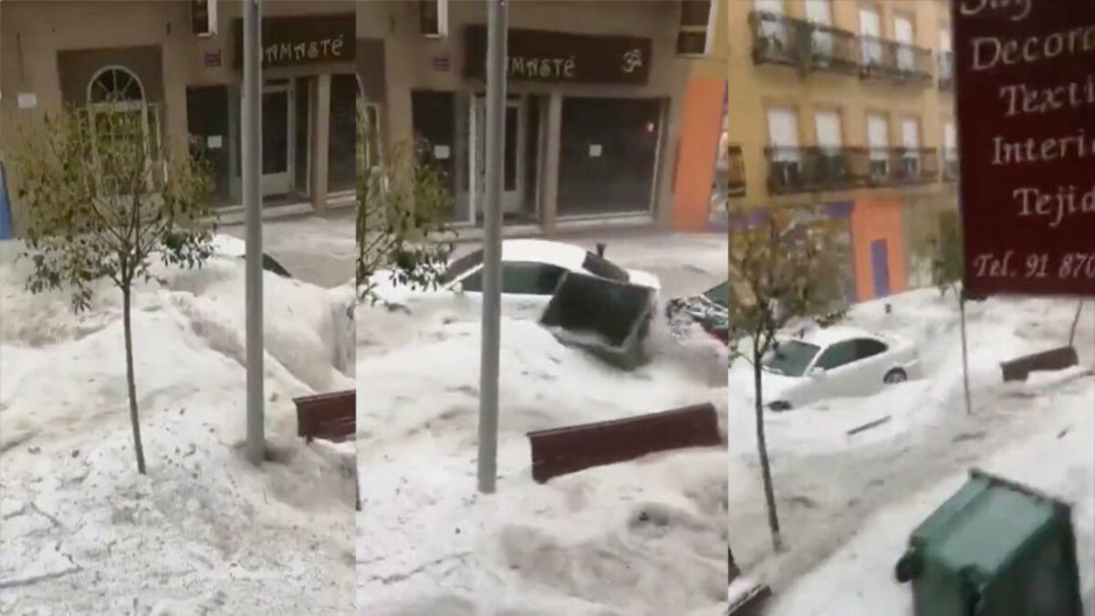 Complete straten weggeveegd door bizarre hagelstorm in Madrid Nieuws