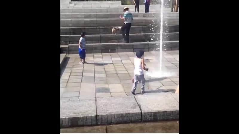 Koter wordt door een matig fonteintje toch de ruimte ingeslingerd Fails