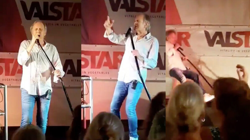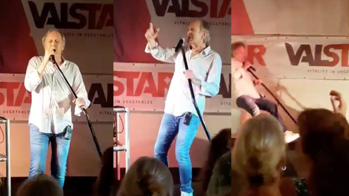 AUW: Rob de Nijs (76) klapt hard van het podium tijdens optreden in Naaldwijk