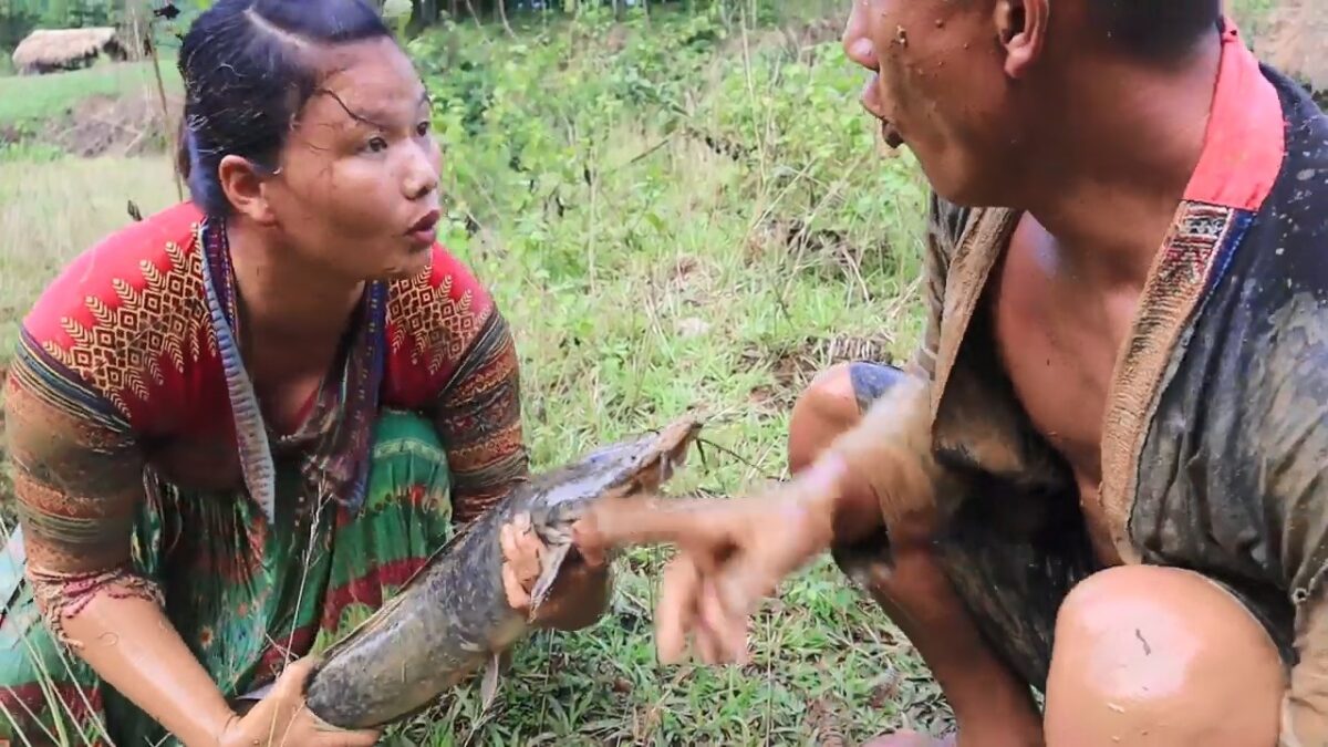 Enthousiast stelletje vangt meervallen met de hand tijdens romantisch dagje uit Natuur