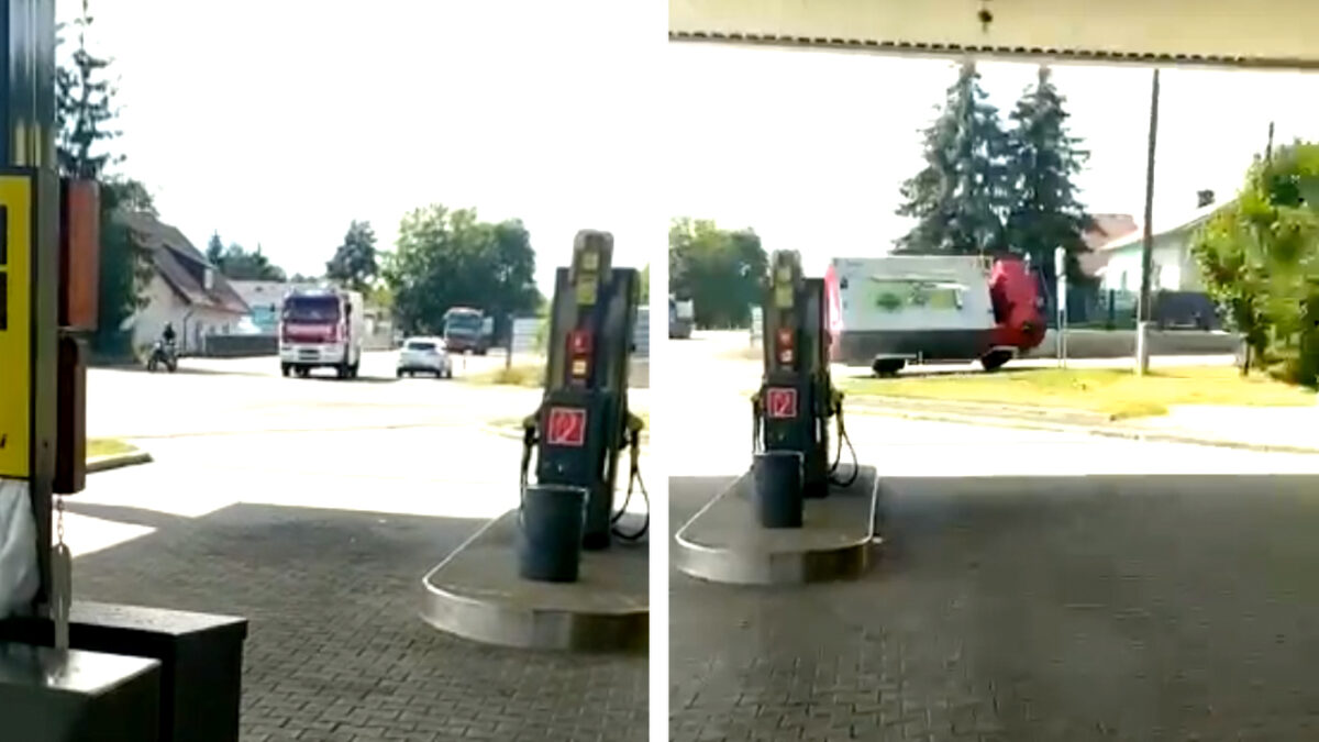 Duitse Brandweer jakkert te snel de bocht door en parkeert 'm op z'n zijkant