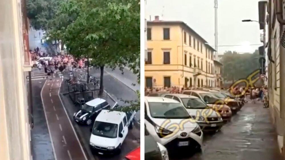 'Twentesupporters aan het rennen voor de hoolies van Fiorentina'