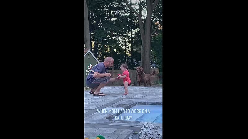 Als mama op zaterdag moet werken, vermaakt papa zich prima met zijn koter hoor. Schat, wanneer moet je weer?