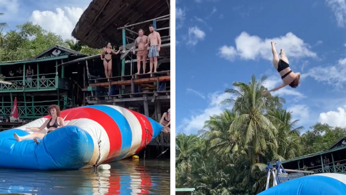 Kijk mam, als jij nou daar gaat liggen dan springen wij er straks lekker bij!