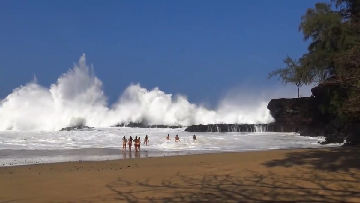 Gigantische golven bezorgen de strandgangers op Hawaï een hoop plezier Natuur