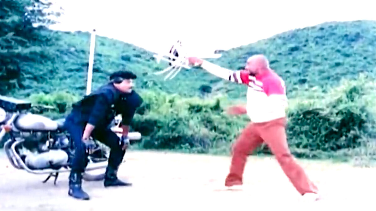 Een korte actiescène uit de Indiase film State Rowdy met in de hoofdrol de tevens onovertroffen actiefilmlegende Chiranjeevi.