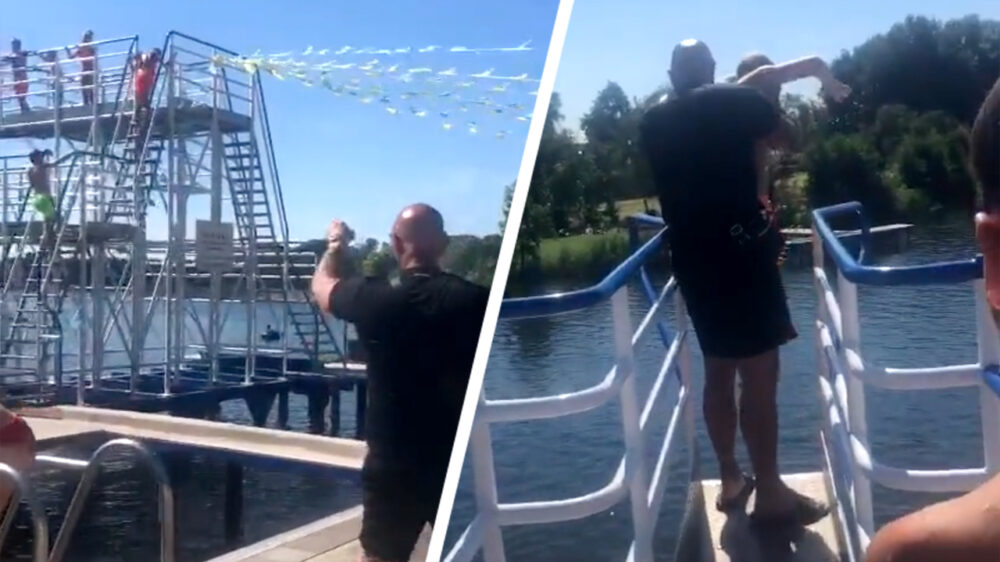 Alex Soze gooit zoon van duikplank omdat hij er niet vanaf durft te springen