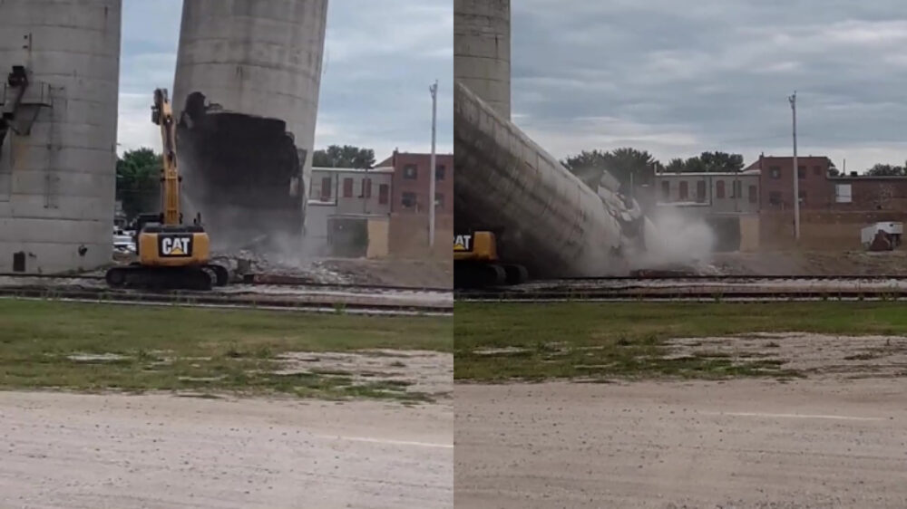 Nu ben ik geen expert, maar het lijkt enigszins logisch dat zo'n silo jouw kant op komt als je aan die onderkant aan het slopen gaat. Wonder boven wonder kwam de machinist er vanaf met slechts een lichte verwonding aan zijn elleboog.