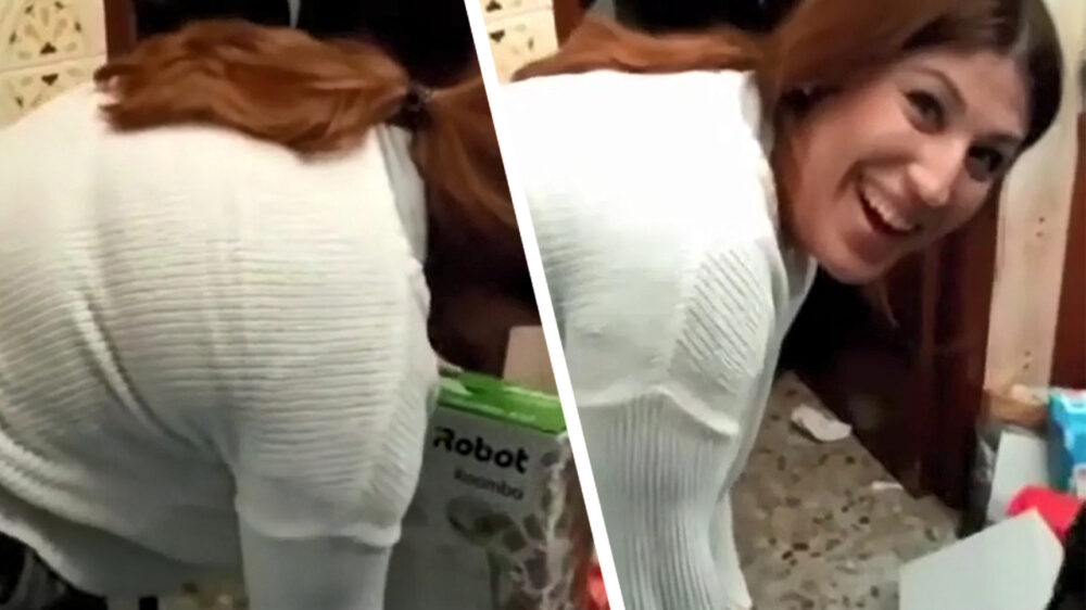 Vrouwlief krijgt voor d'r verjaardag een echte Roomba cadeau. Kijk eens hoe gelukkig ze is.