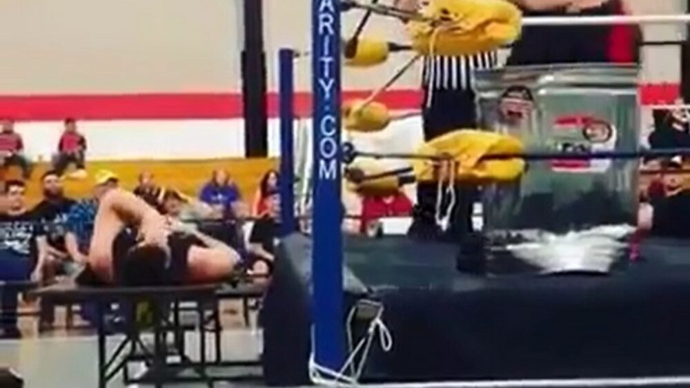 Zwaargewicht heeft een zieke finish-move Bizar