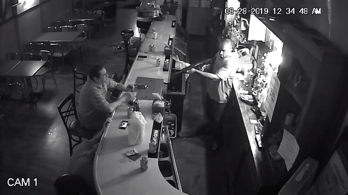 Bij noodsituaties is in paniek raken is eigenlijk nooit een goed idee, maar hou je maar eens rustig als er iemand met een Hi-Point Carbine (ik ben geen kenner) een café komt binnenwandelen.