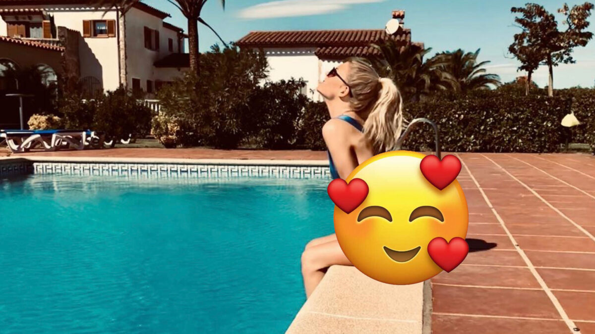 Davina Michelle in bikini aan het zwembad duurt nooit te lang
