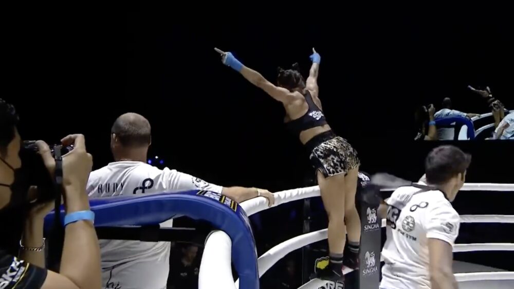 Tai Emery trakteert publiek op voorgevel na haar Bare Knuckle-gevecht in Thailand
