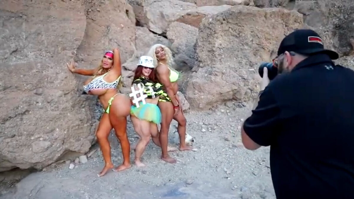 Zoals Miss Plastic Fantastic zelf aangeeft zijn ze op een schilderachtige plek in de hete woestijn van Nevada voor een fotoshoot, maar het ligt waarschijnlijk aan ons dat we niet echt van de omgeving kunnen genieten.