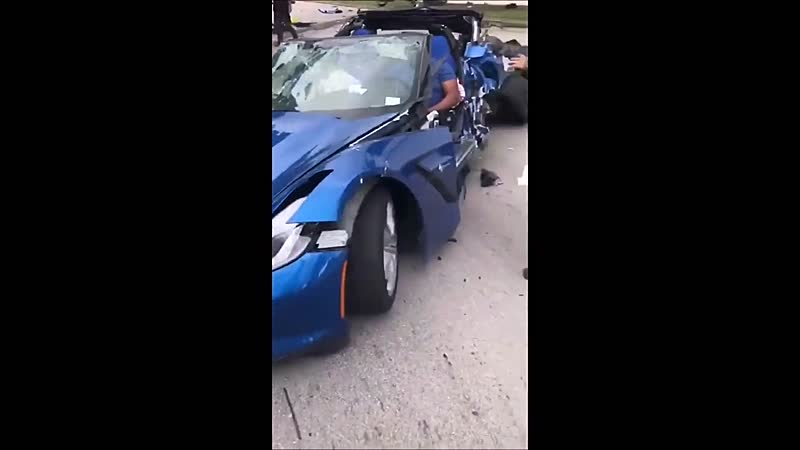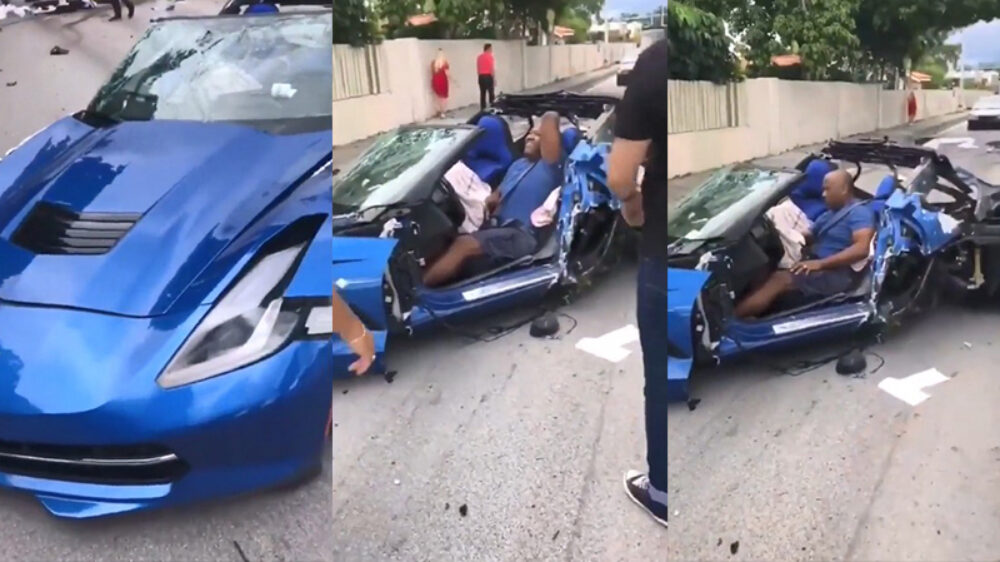 Dat de bestuurder van deze Corvette nog leeft mag een wonder genoemd worden. Zo te zien heeft hij er vrijwel niets aan overgehouden.