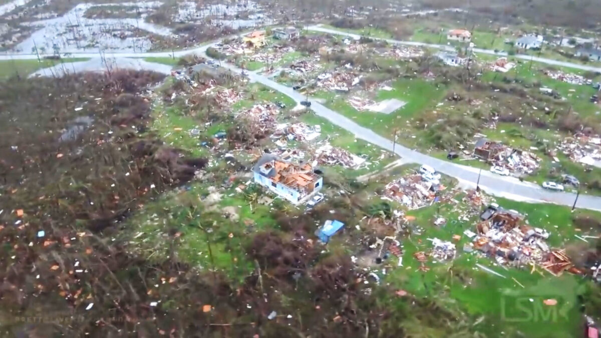 Helikopterbeelden laten de verwoestend kracht van orkaan Dorian zien op de Bahama's