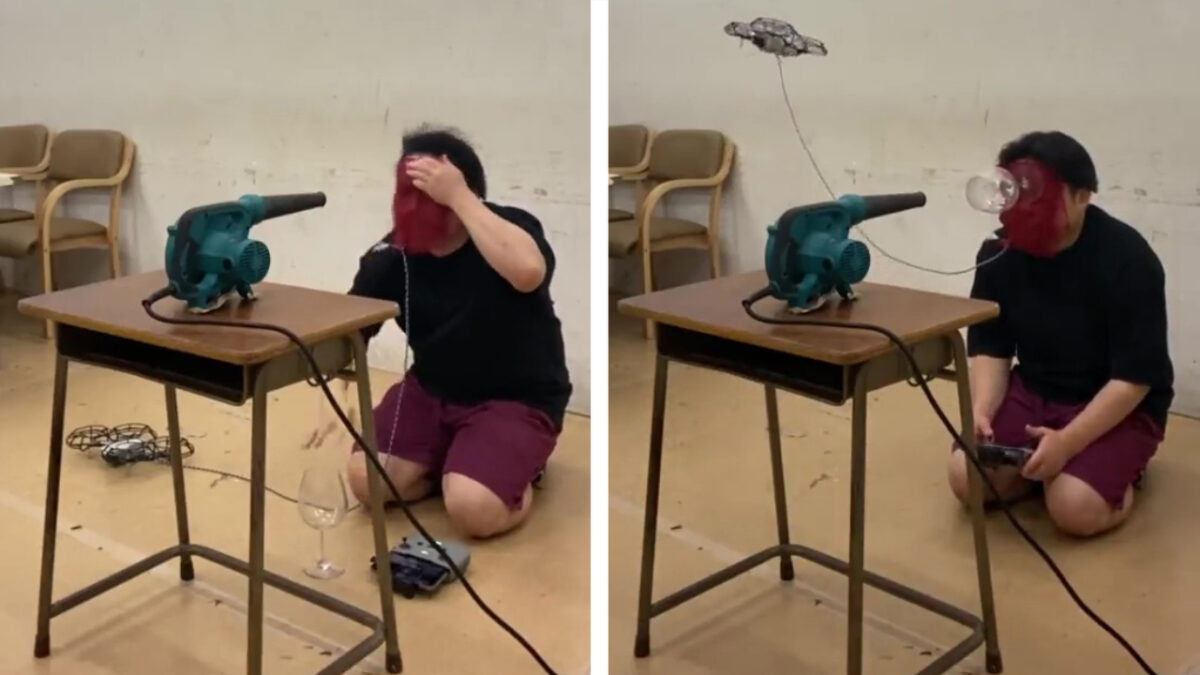 Mocht je je vervelen, haal dan even een rode lap, een bladblazer, een wijnglas en een drone tevoorschijn om dit trucje te reproduceren. Vergeet ons ook vooral de mislukte video's niet op te sturen!