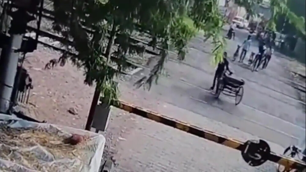 Indiër kan z'n riksja afschrijven nadat hij op een haar na een trein kopt