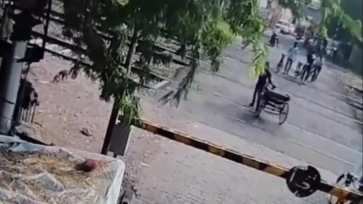 Indiër kan z'n riksja afschrijven nadat hij op een haar na een trein kopt