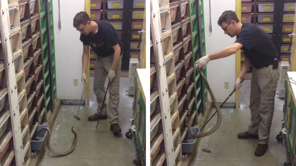 Een trekmuur vol giftige cobra's voeren is net zo angstaanjagend als je denkt