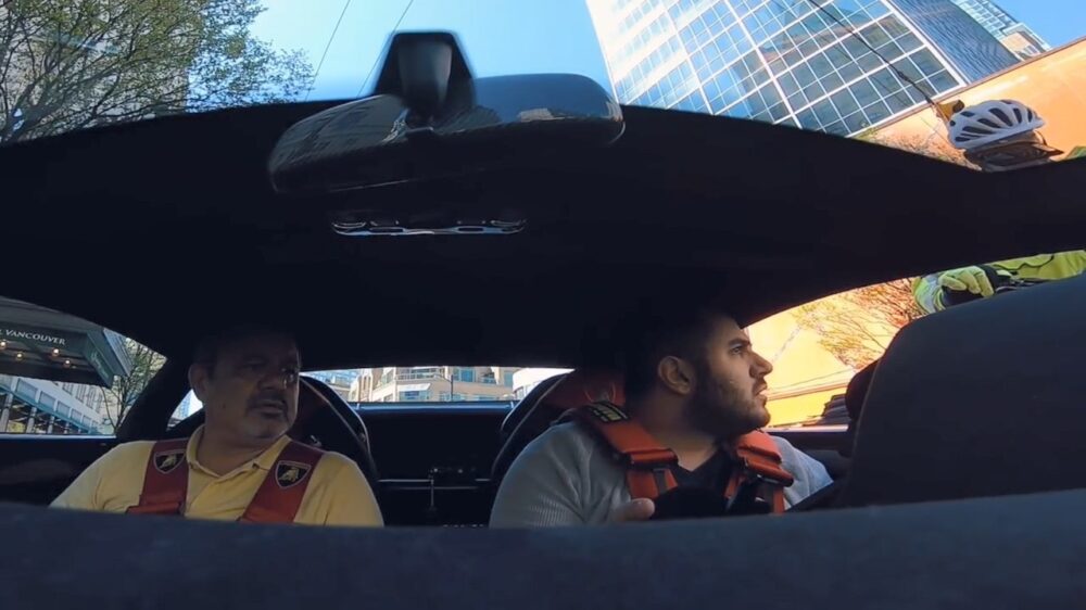 Politieagent verwart stuur van een Lamborghini met een mobiele telefoon